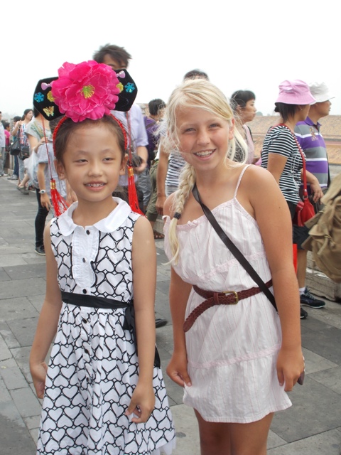 Several things must be noted about the day. First, at least 50 Chinese people (I kid you not) took pictures of one or more of the girls. Seriously! It was comical. About 1/3 of them politely asked to have their pictures taken with them and the other 2/3 would run over and snap their picture and then run off. Hailey was the biggest celebrity of the three with more requests for pictures than her two older sisters although they had their fair share as well. Some even felt the need to stroke Hailey’s hair. When we asked Lu Lu (our Mongolian guide) why this was happening, she explained that most of the people are from the country where they rarely see Caucasians and some have probably never seen blondes before. It should be noted that no one wanted pictures of John & Stacy. Hmm…..