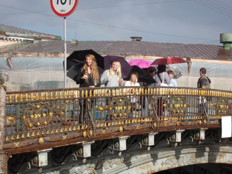 Well today we had several people tell us that Zoe looks Russian at different times in the day. The Russians appear to be very nice and helpful people. They are also an attractive group on the whole with chiseled features. We have not felt unsafe at all while here. St. Petersburg is a gorgeous old world city with charming canals that run through it. It is a city that stays up late at night, at least in the summer because it stays light so late into the evening. The sun doesn’t set until after 10 pm. Things are not cheap here at all. The temperature highs have been in the mid to low 60s. It rains on and off suddenly and then the sun comes out.