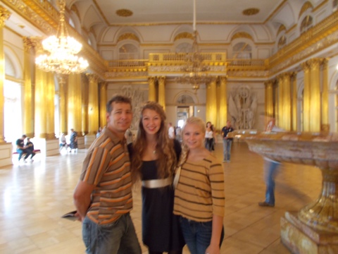We left the apartment on foot and to our pleasant surprise, we were about five minutes away from The Hermitage Museum. Our apartment location rocks!! The Hermitage is simply gorgeous and so old world and regal. The Hermitage was also the Winter Palace for the Tzar and his family. The decor inside is breathtakingly beautiful. So elegant! We all felt that although the Louvre in Paris has a more impressive collection of art and Versailles is stunning, the decor itself of the Hermitage tops the others. The ceilings are all painted with scenes or elaborate designs, the floors had beautiful wood inlays, the chandeliers were opulent, the curtains gorgeous and their furniture exquisite. It is vast and we got lost on several occasions. We saw works of many of the masters such as Degas, Picasso, Michelangelo, DiVinci, Monet, Renoir, Matisse and more. We spent a good 3 hours or more in there and could have easily stayed longer.