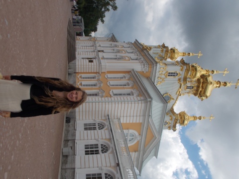 By the time we had arrived by hydrofoil, it was about 1:45 pm There was a massive line to get into the Palace in which we waited over a half hour. We were scheduled to return on the 4:00 pm hydrofoil. We finally gained access into the Palace, purchased tickets for another $15 each and stared our tour. The Palace is even more grand in its decor than the Hermitage which is hard to imagine. It was stunning and unfortunately no photographs were allowed at all. Each room was well equipped with furniture from the time period, silk fabrics on the walls that matched the incredibly fancy curtains, beautiful wood floors with inlayed patterns, gorgeous chandeliers and candelabras. Even elaborate tables set with gorgeous china. Since we were not part of a tour, it didn’t take us long to complete a walk through. We were done in a half hour. Clearly only a portion of the Palace was open to the public. Afterwards we walked around the gardens a bit and returned to the dock to catch the hydrofoil. It was a quick afternoon but we both enjoyed our adventure. We beat John and the girls to the hotel by five minutes 🙂